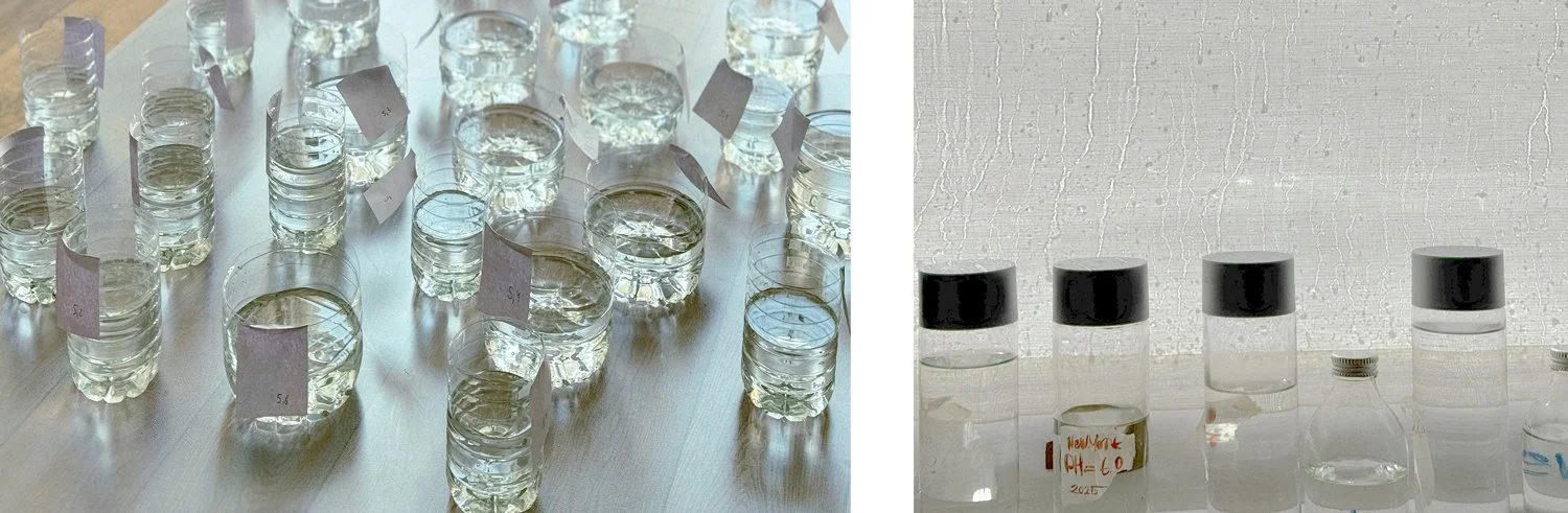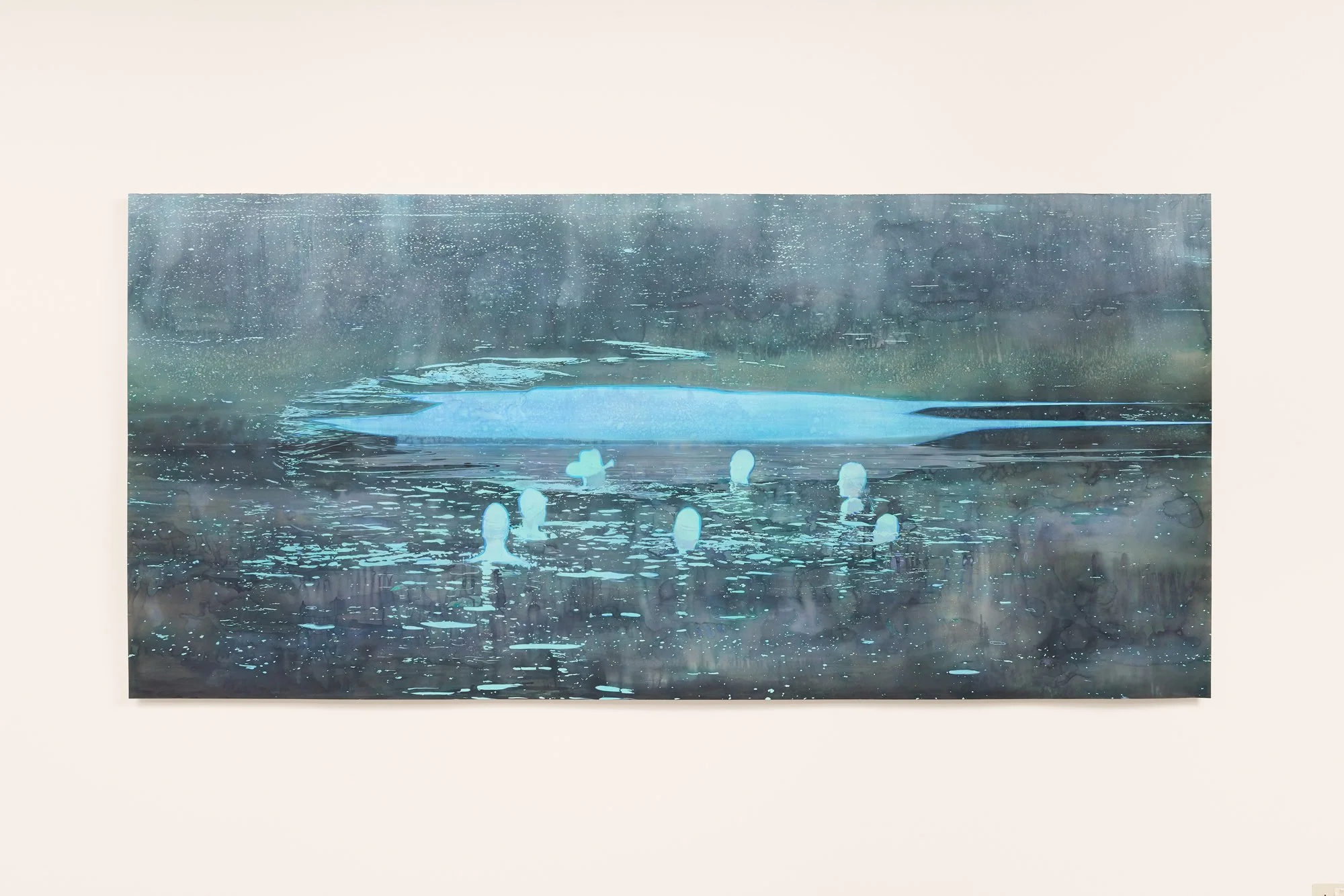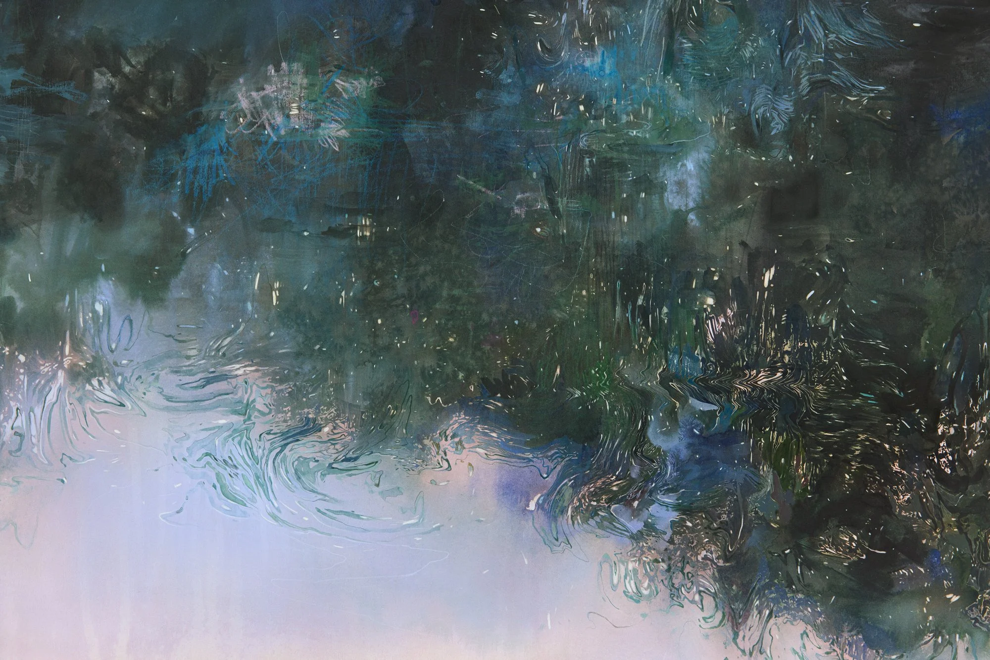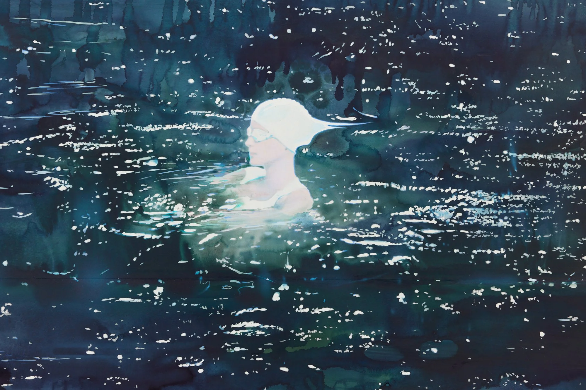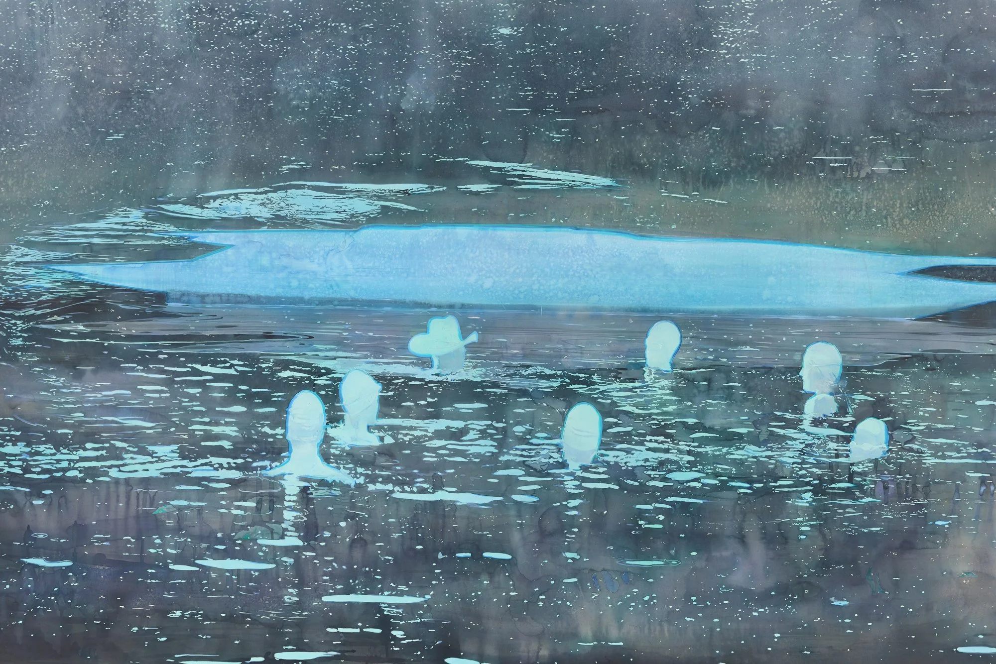 Dima Rebus is a contemporary artist whose practice explores the changing forms of everyday human life through water samples gathered by strangers across the world. These contributors, whom he calls floaters, become his co-authors: some send samples directly, while others leave them anonymously in parks, alleyways, abandoned buildings, or on busy streets for the artist to discover. Nearly every sample arrives with a letter, opening a dialogue shaped by place, mood, memory, and time. Some are poetic — seasonal rain, glacial melt, water collected with great care — while others carry a more volatile charge: specimens from conflict zones and distressed landscapes, offerings shaped by fetish desire, or liquids disturbed by contamination, acid, or traces of blood. Rebus has assembled a vast library of waters from rains, rivers, seas, oceans, and glaciers, each preserved as both material record and human message. He freezes these samples with watercolor pigments, lets them melt onto varied paper surfaces, and then enters the resulting abstract fields with figurative imagery, turning each work into a bridge between distant lives, material transformation, and the fragile poetics of connection.