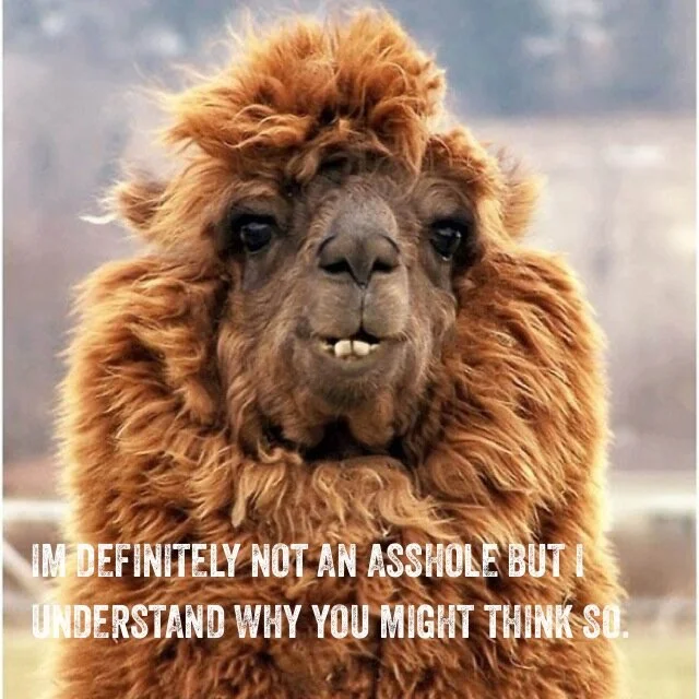 I am looking for another in an “asshole mask,” and I long for the day we can reveal ourselves to each other and take off our butt faces! I also want all the true assholes to find each other, in an assholeary! They can frolic, condescend, betray, get hopelessly lost in themselves and always be perfect and leave the rest of us alone! I know I am not asking for too much — but it takes time!
