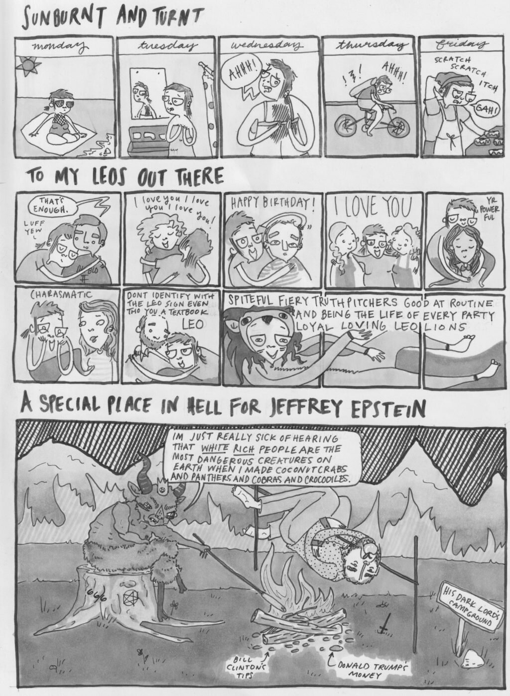 “Birds, body hair, multiple faces and sides of the artist’s personality.”